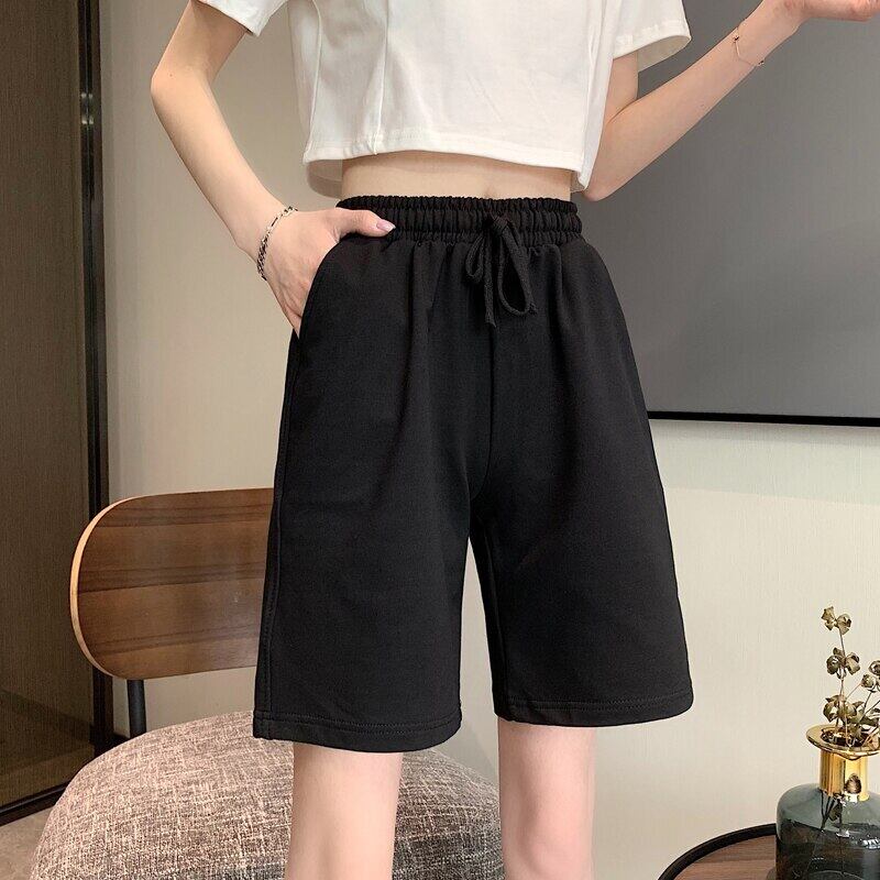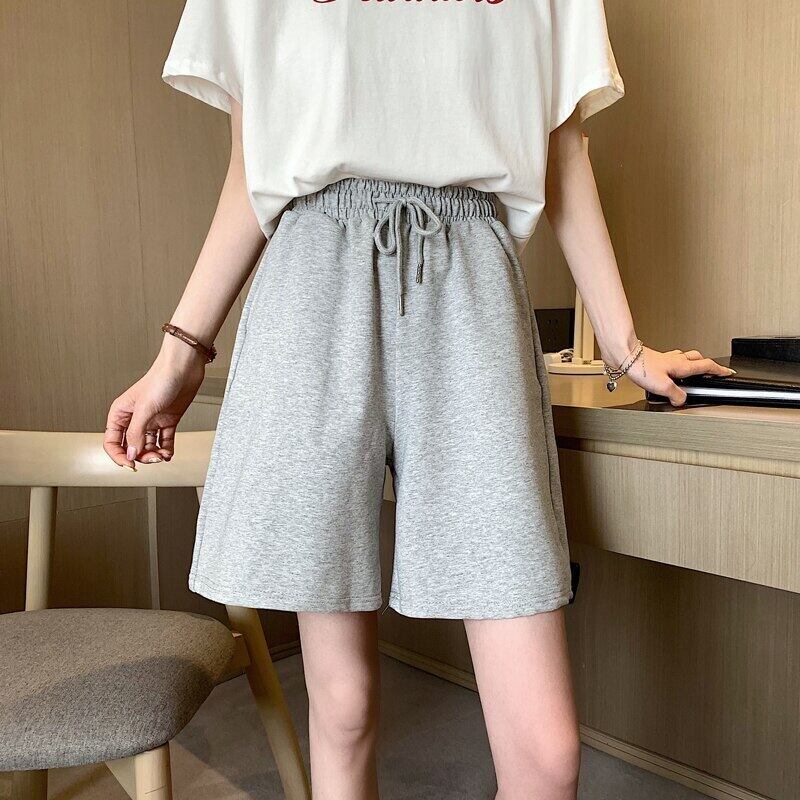 女性ボトムススポーツショーツ固体弾性ウエストワイドレッグスウェットショーツトラックスーツワークアウトコットンルーズスウェットパンツ エラスティック 伸縮 ブルマー ワイドパンツ ソリッドカラー
