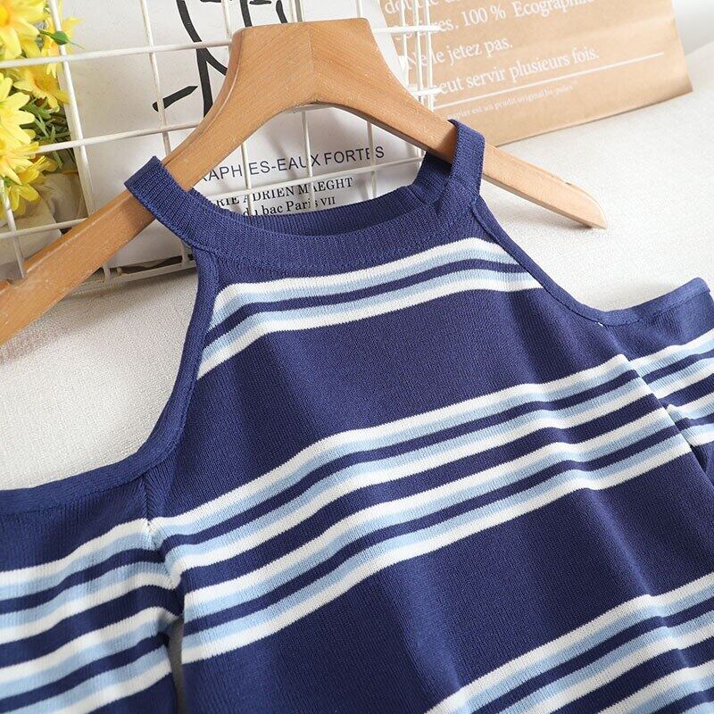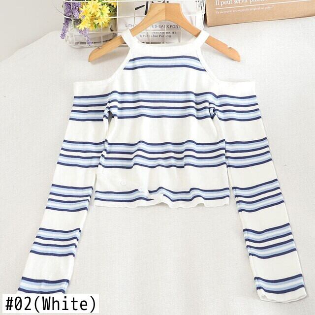 レディース Tシャツ トップス ストライプ 長袖シャツ オフショルダートップ シックなブラウス Y2k ストリートウェア ロング
