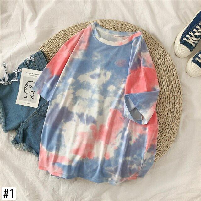 2021 夏勾配絞り染めグラフィック半袖 Tシャツ Tシャツ Y2k 美的ストリート女性トップ ショート ハーフスリーブ サマー 夏物