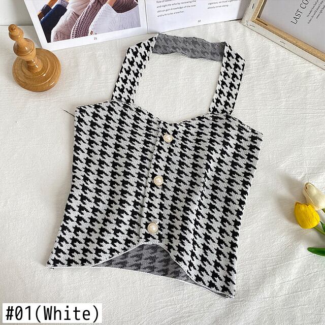 レディースサマー2022千鳥格子プリントキャミスパゲッティストラップタンクトップY2kセクシーストリートキャミソール 夏物