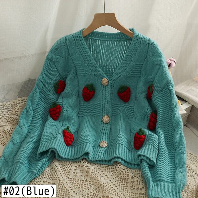 3D ストロベリールースコートシングルブレストセーターカーディガン女性秋冬 2022 長袖トップ ロング ウィンター 冬物