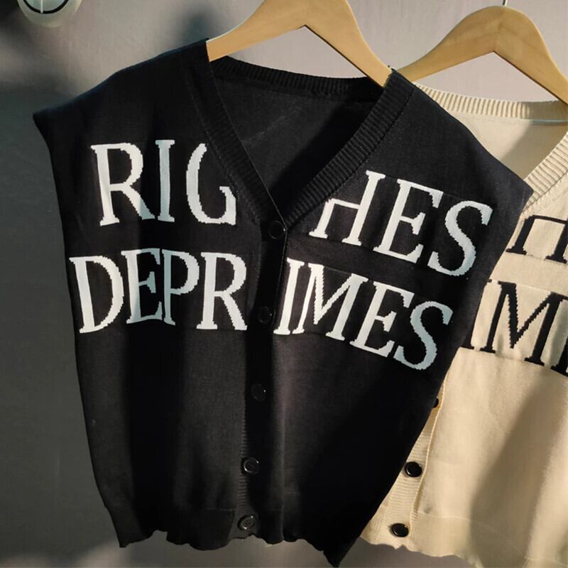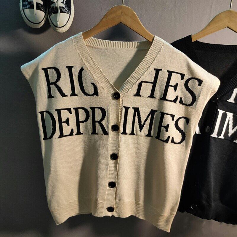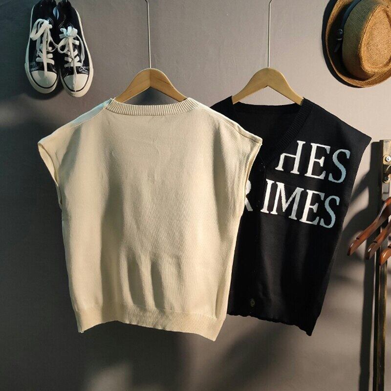 秋 2022 ニットセーターベスト女性 V ネックシングルブレストトップルース原宿ノースリーブストリート かわいい Vネック