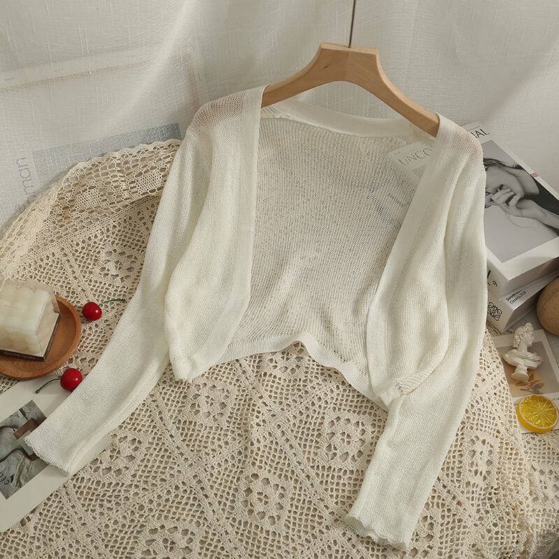 女性の夏 2022 薄いコートクロップドニットカーディガン日焼け止めシャツショールオープンステッチブラウスストリート サマー 夏物