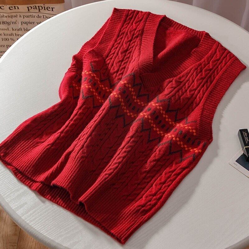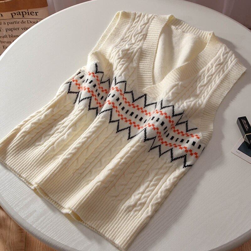 秋冬 2021 女性セーター ベスト ノースリーブ ジャケット プレッピー スタイル Y2k トップ ニット ジャンパー ウィンター 冬物