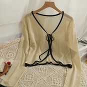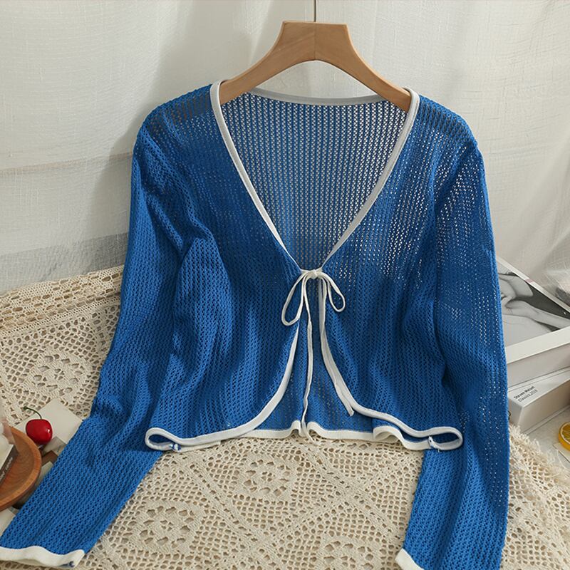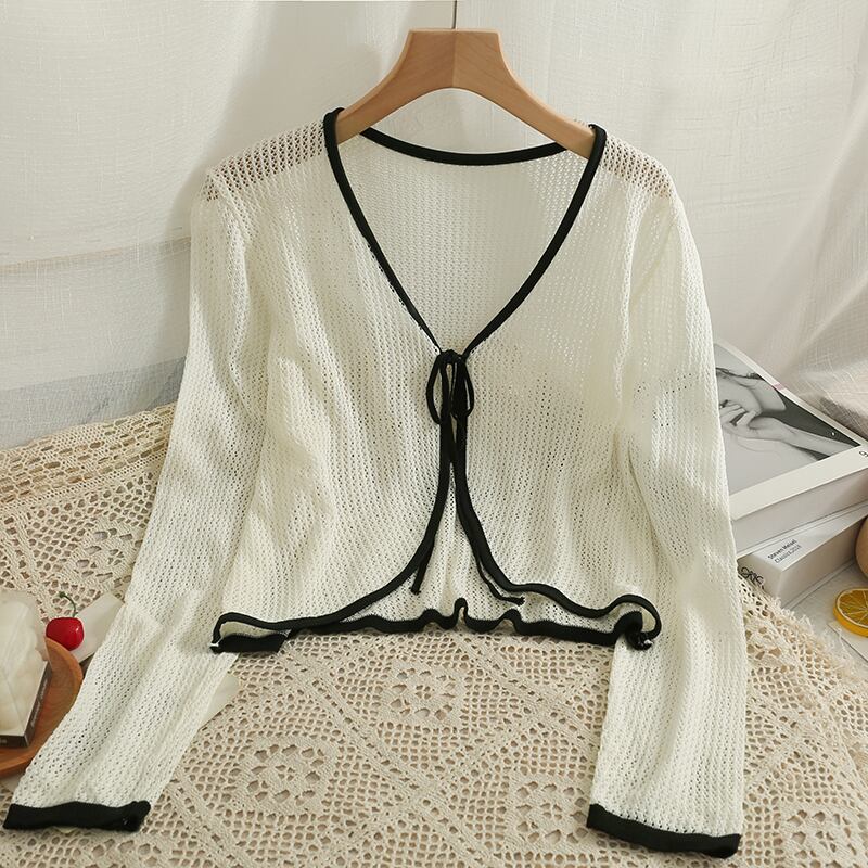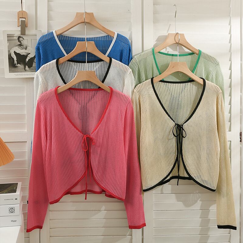 2022 夏ニット日焼け止めシャツ女性長袖カーディガン太陽保護服薄いコートトップス ロング サマー 夏物