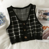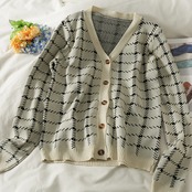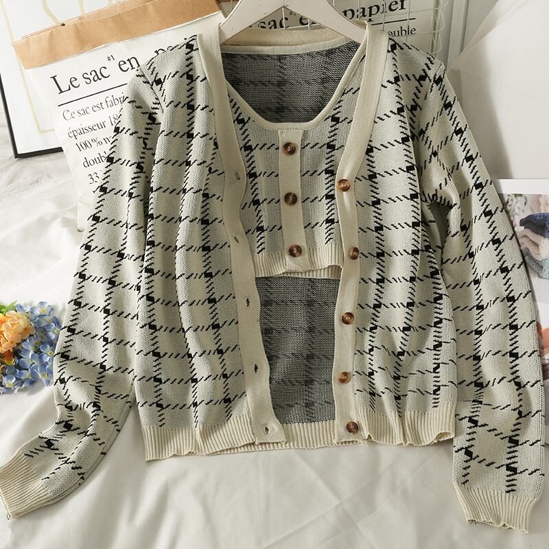 女性服 2021 秋のニットスーツボタンアップ長袖カーディガンタンクトップセット格子縞のセーターコート ロング オータム 秋物