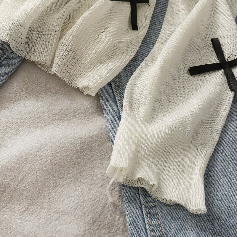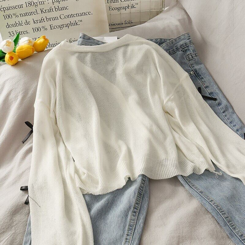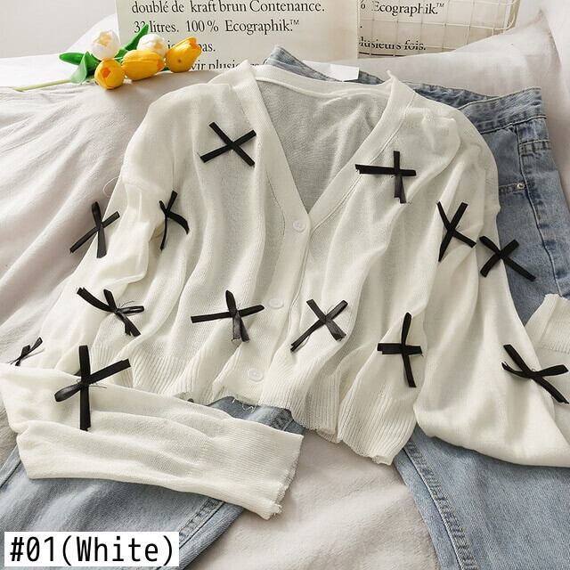 レディース 2021年 薄手 ニット カーディガン トップス リボン Vネック 長袖 トップス 日焼け止め シャツ ニットウェア ロング