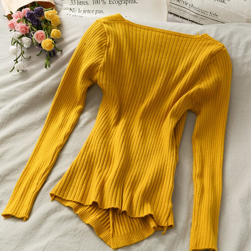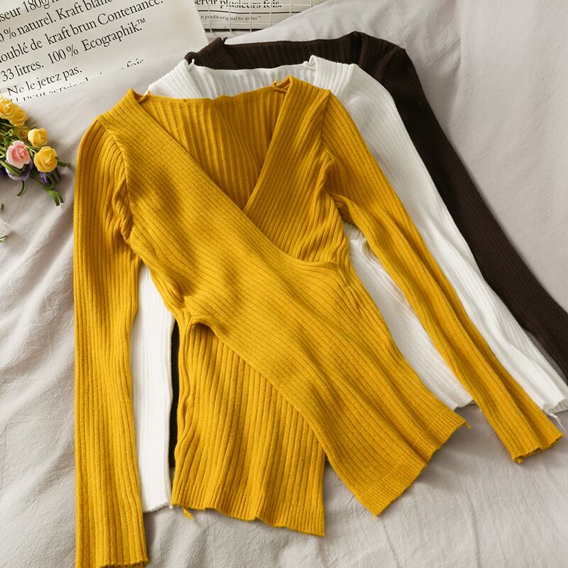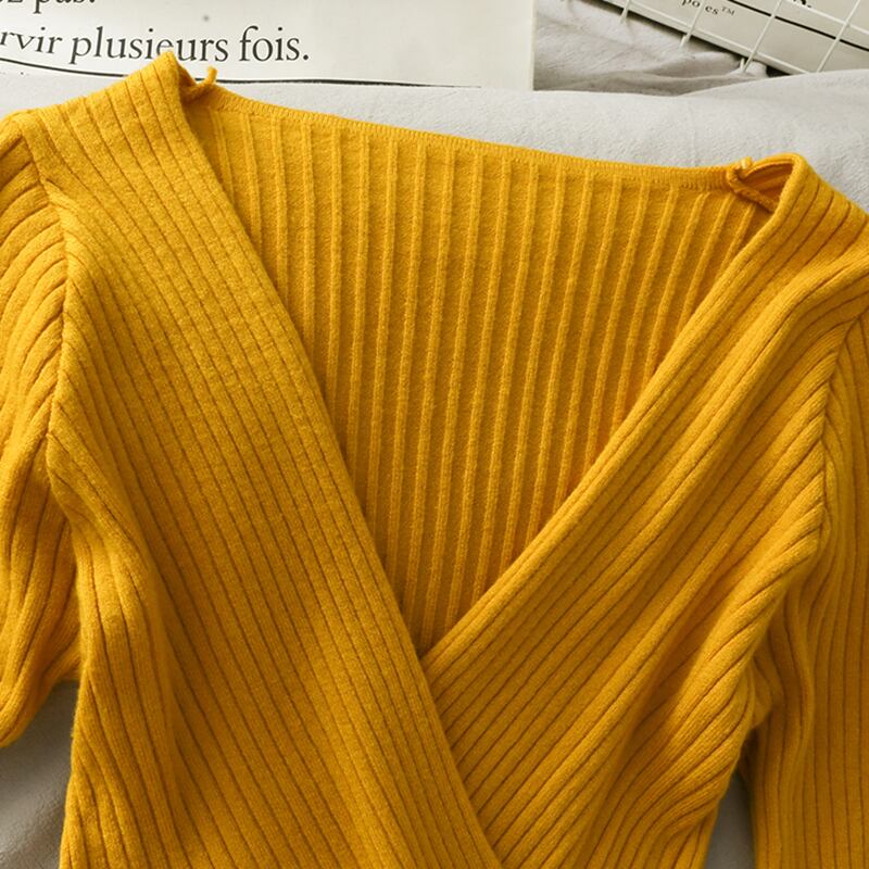 秋 2021 レディースクロスニットセーター V ネック長袖トップスタイルベースシャツボディコンジャンパープルオーバー美的 ロング Vネック
