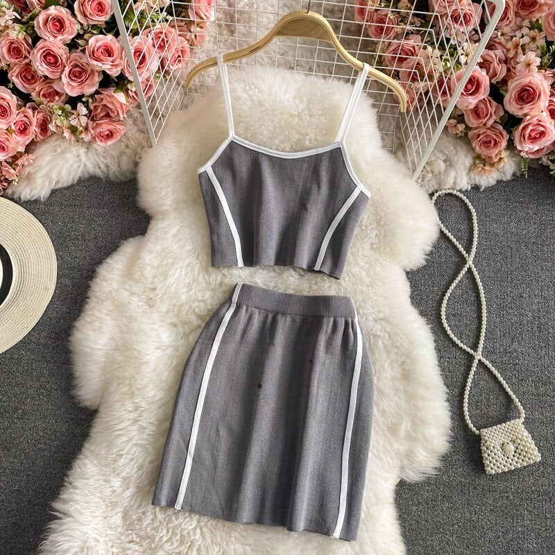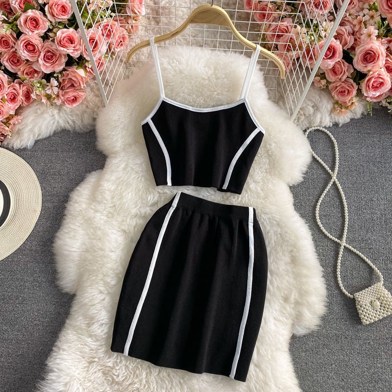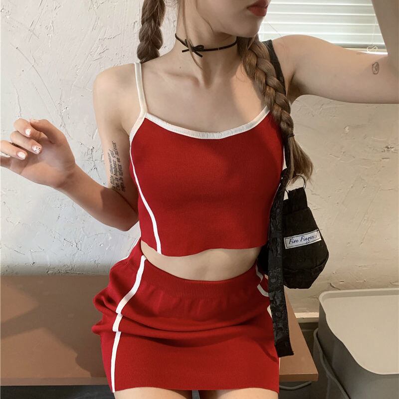 女性の夏のタンククロップトップキャミとウエストミニスカートスーツ 2 点セットセクシーなボディコン衣装トラックスーツ サマー 夏物