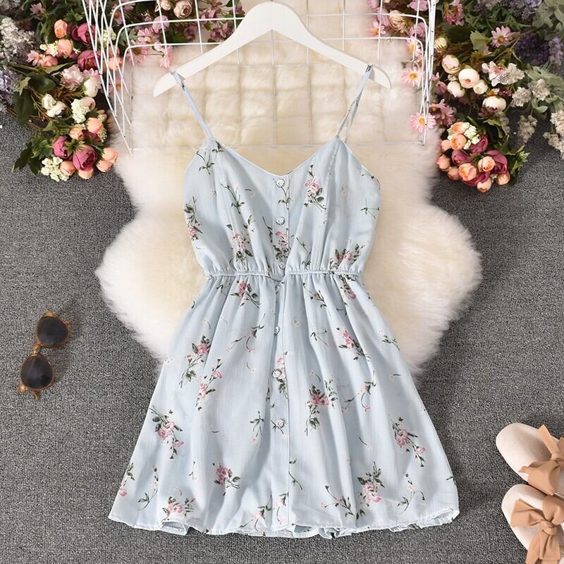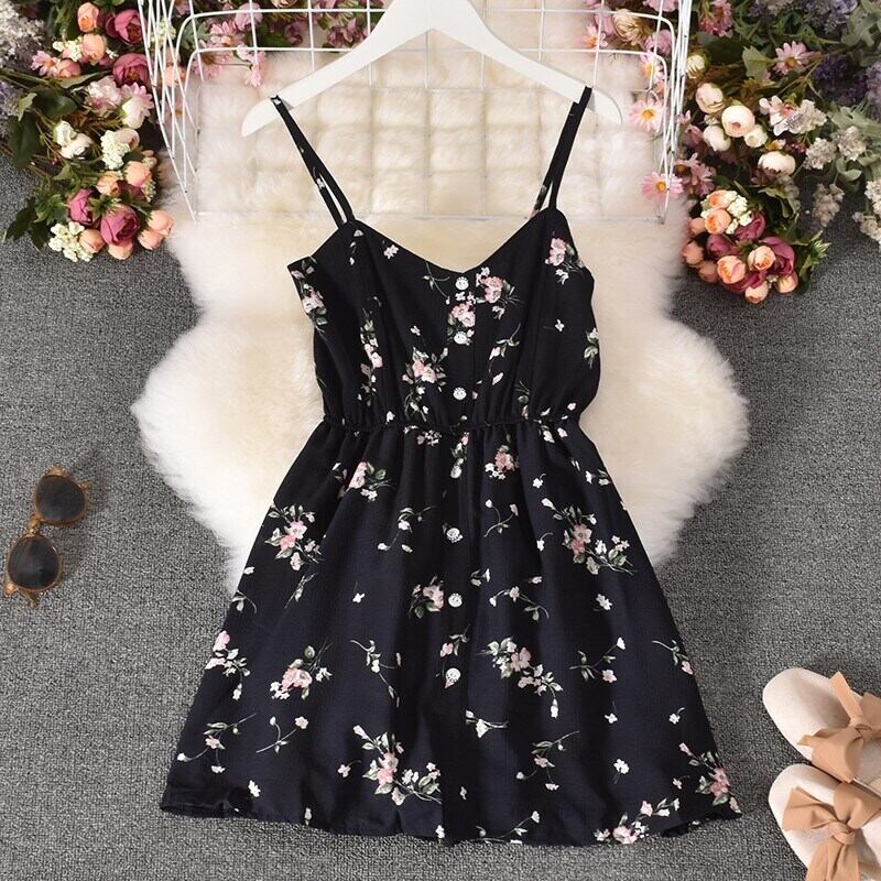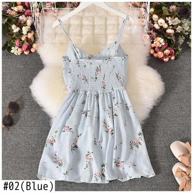 セクシーな花柄の夏の女性の 2021 ドレス ストリート ストラップ ノースリーブ セクシーな背中の開いた甘いワンピース ミニ スカート 大人ガーリー スウィート キュート カジュアル サマー 夏物