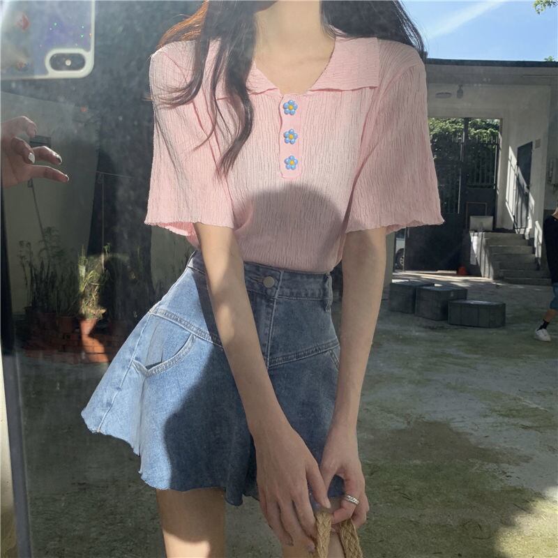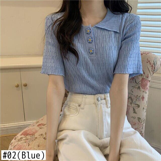 女性の Tシャツ 2021 ニットポロ半袖 Tシャツ Tシャツトップシックな女性ブラウス y2k 美的 Sweetshirts ショート ハーフスリーブ 大人ガーリー スウィート キュート カジュアル