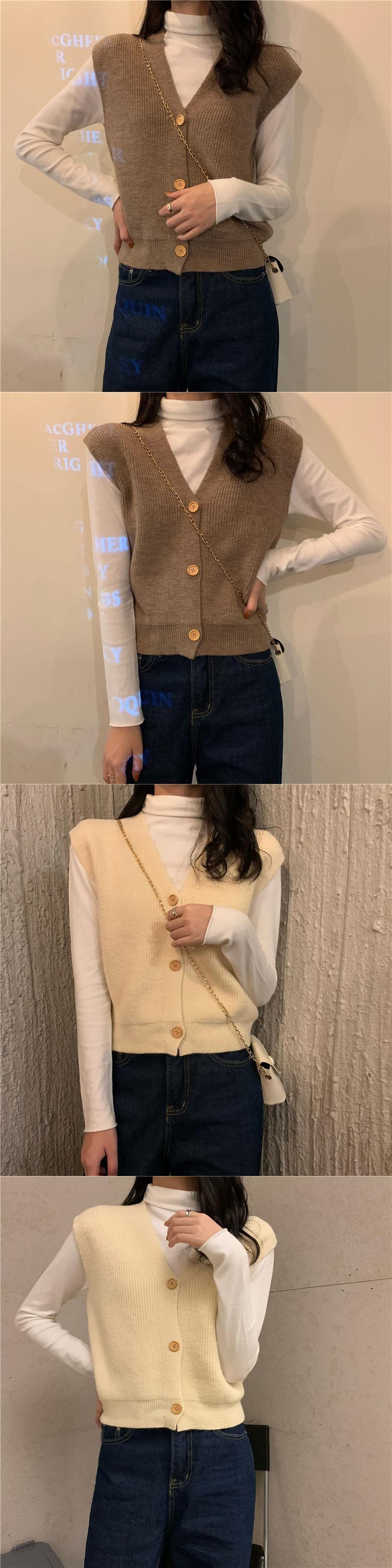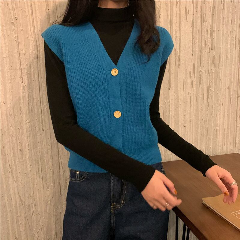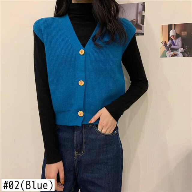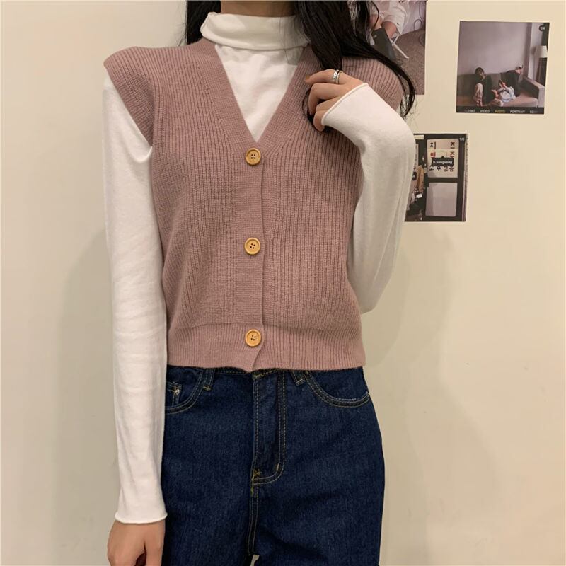 ボタンアップ セーター ベスト女性ソリッド レトロ V ネック ノースリーブ クロップド ニット トップス スタイル ルーズ Vネック ソリッドカラー