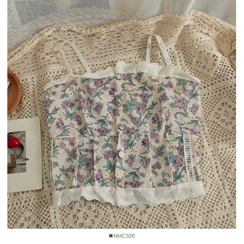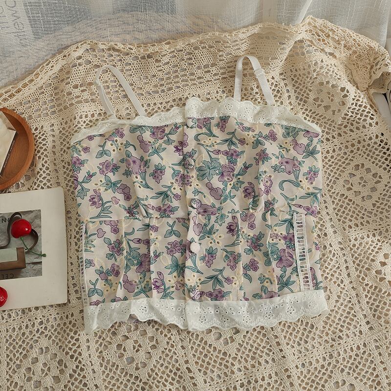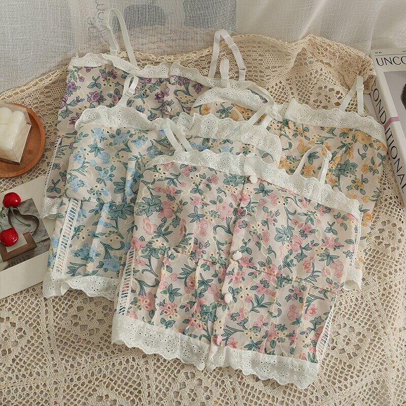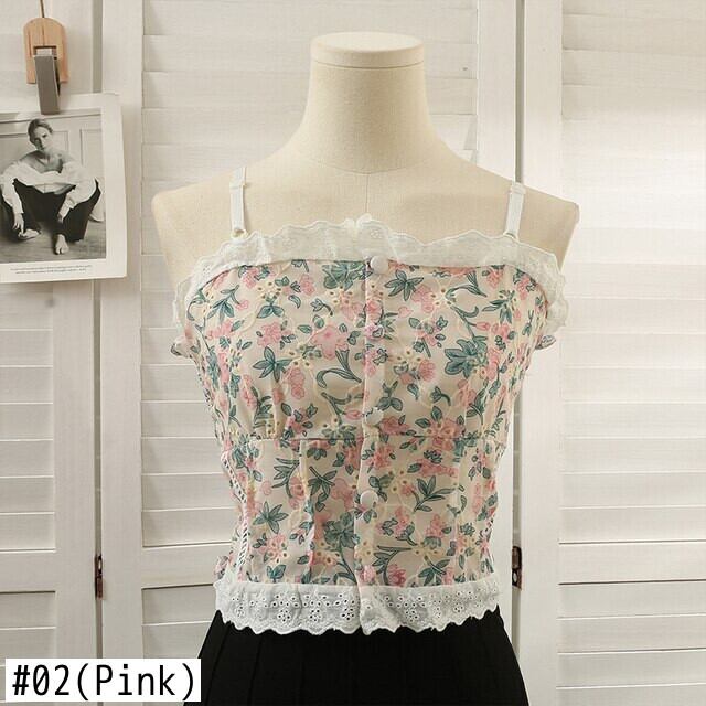 Y2k 中空レース ショート ネーブル タンクトップ レディース 夏 プリント キャミソール スタイル 花柄 キャミソール ストリート サマー 夏物