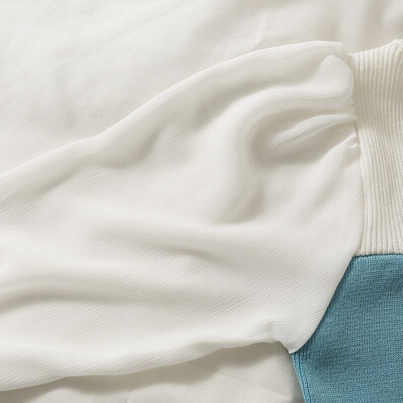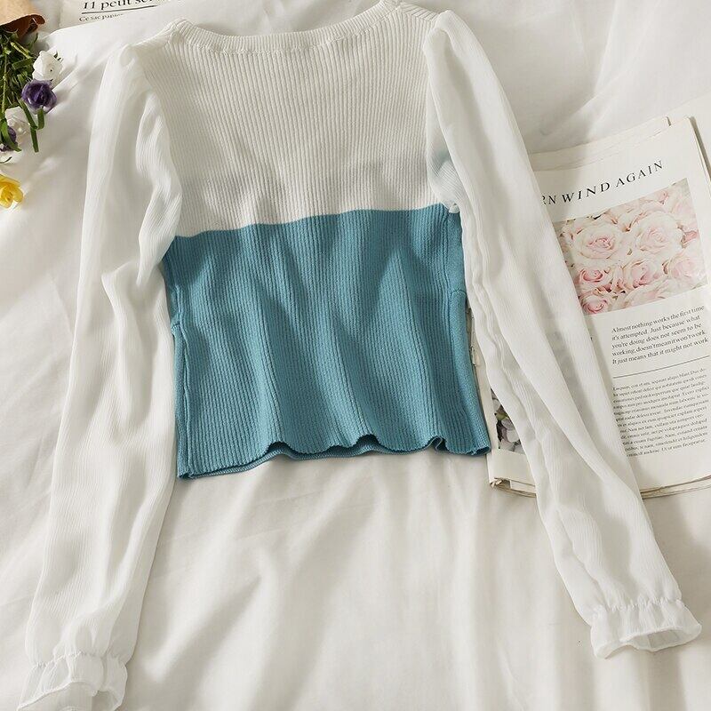 パッチワークトップ女性 2021 春秋長袖シャーリングバストシャツニットブラウススタイルストリートトップス ロング スプリング 春物 オータム 秋物