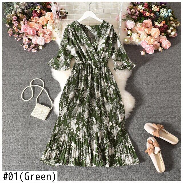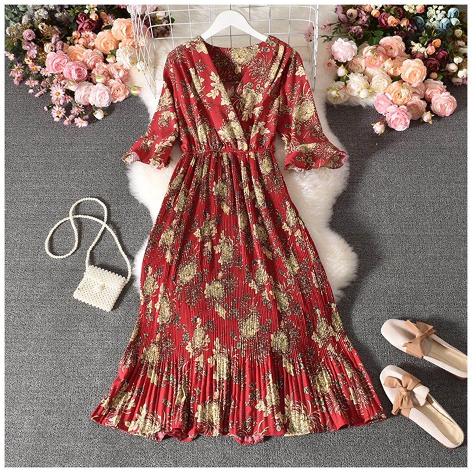 女性の夏の V ネック半袖花柄ドレス フレア袖シフォン膝上ボヘミアン ビーチ ドレス ショート レッド ハーフスリーブ サマー 夏物 Vネック