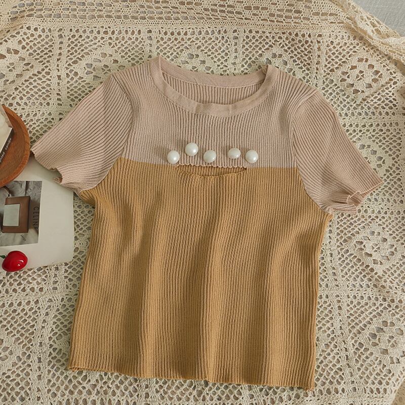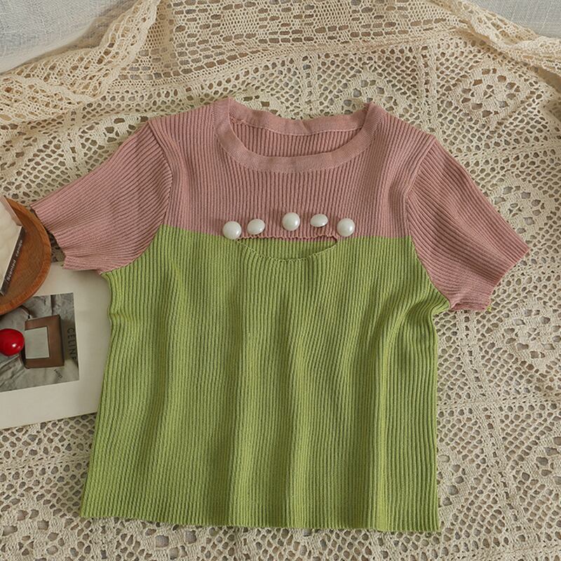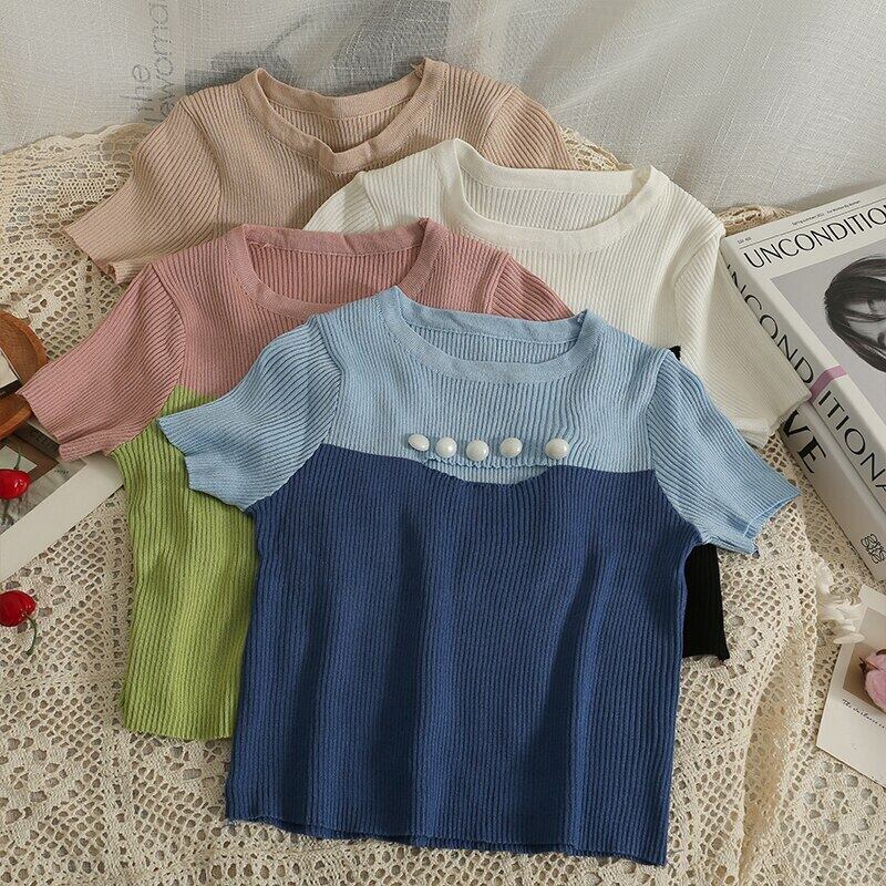スタイル中空アウトスリムニット Tシャツの女性の夏 2022 半袖シャツボディコンクロップトップ Tシャツ ショート ハーフスリーブ サマー 夏物