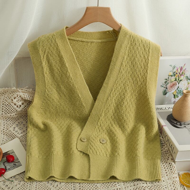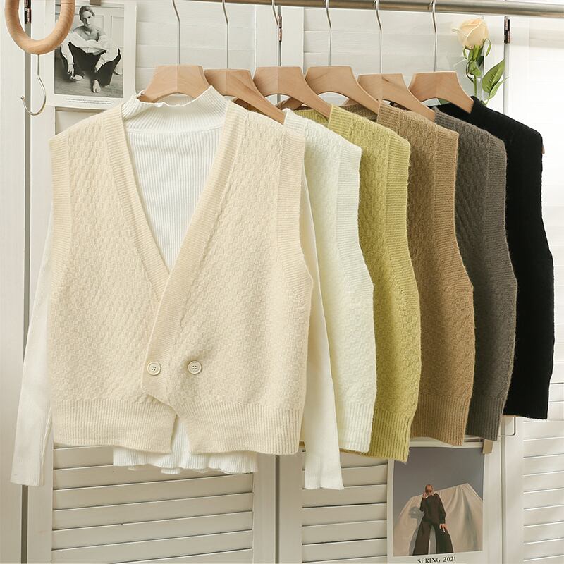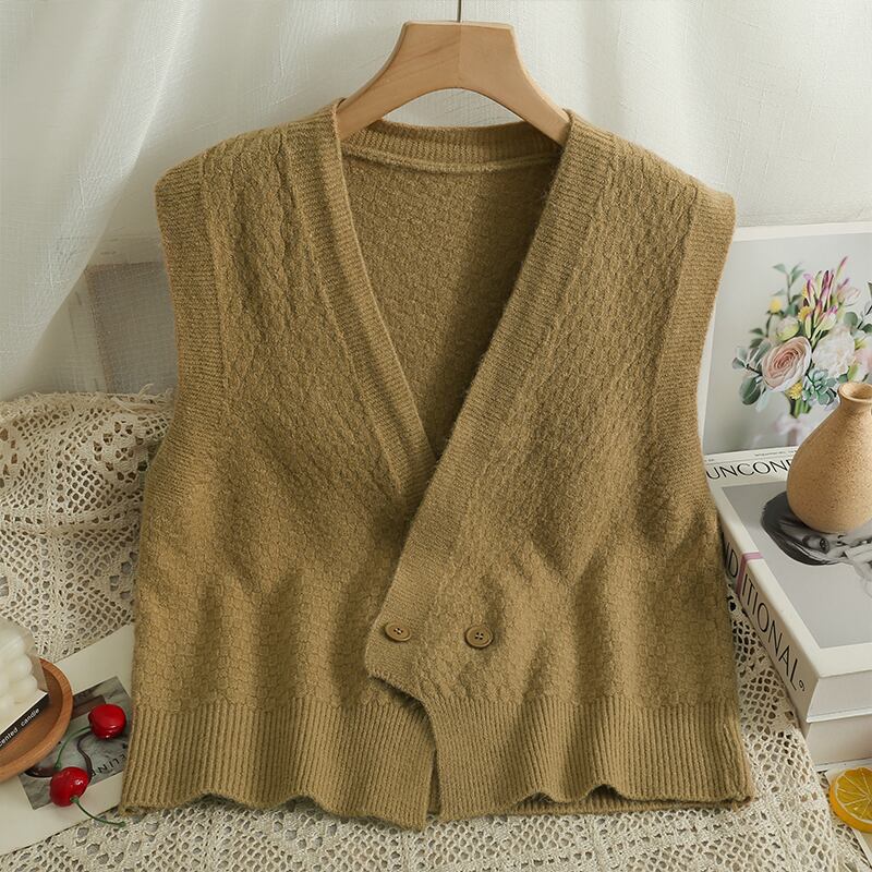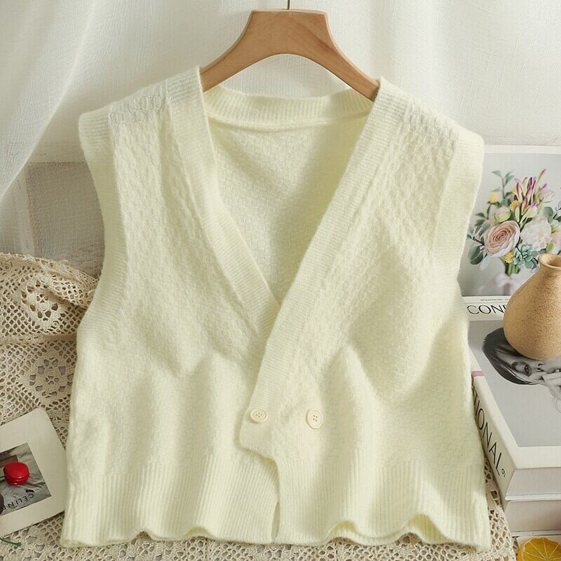 セーターベスト女性ソリッドニットミニベストストリート原宿秋トップチョッキジャンパー かわいい オータム 秋物 ソリッドカラー