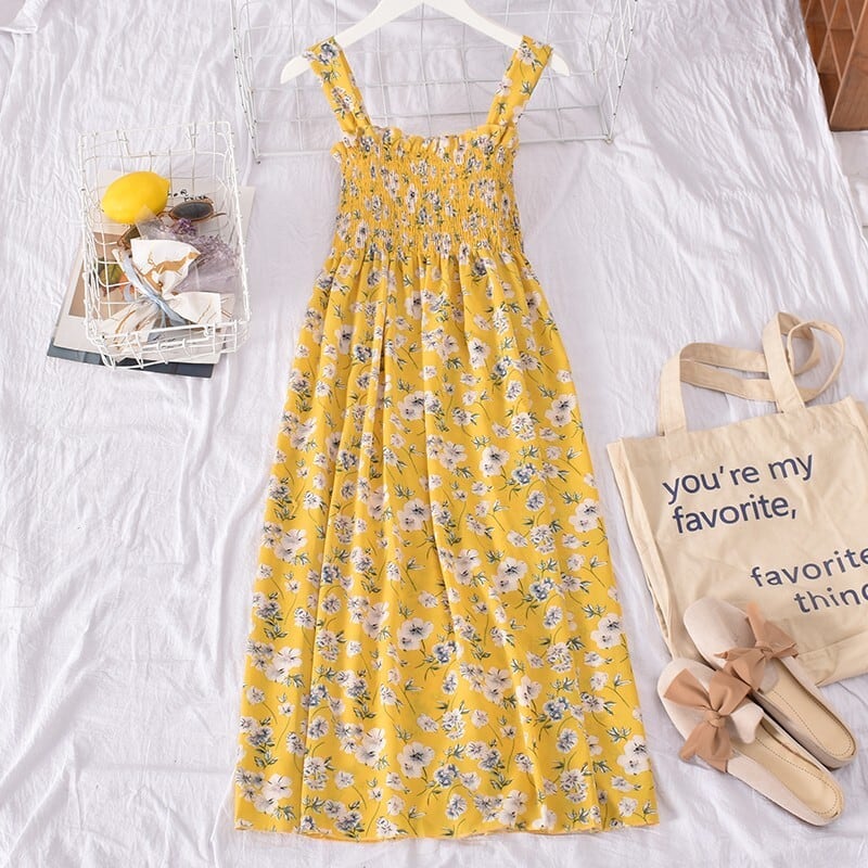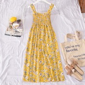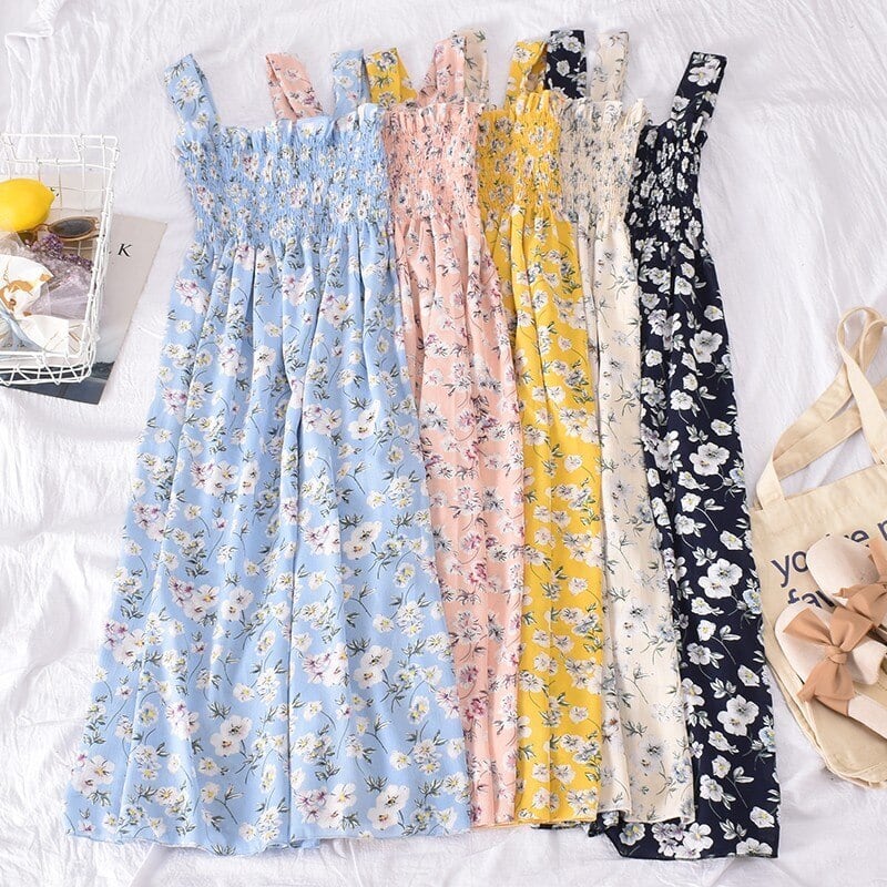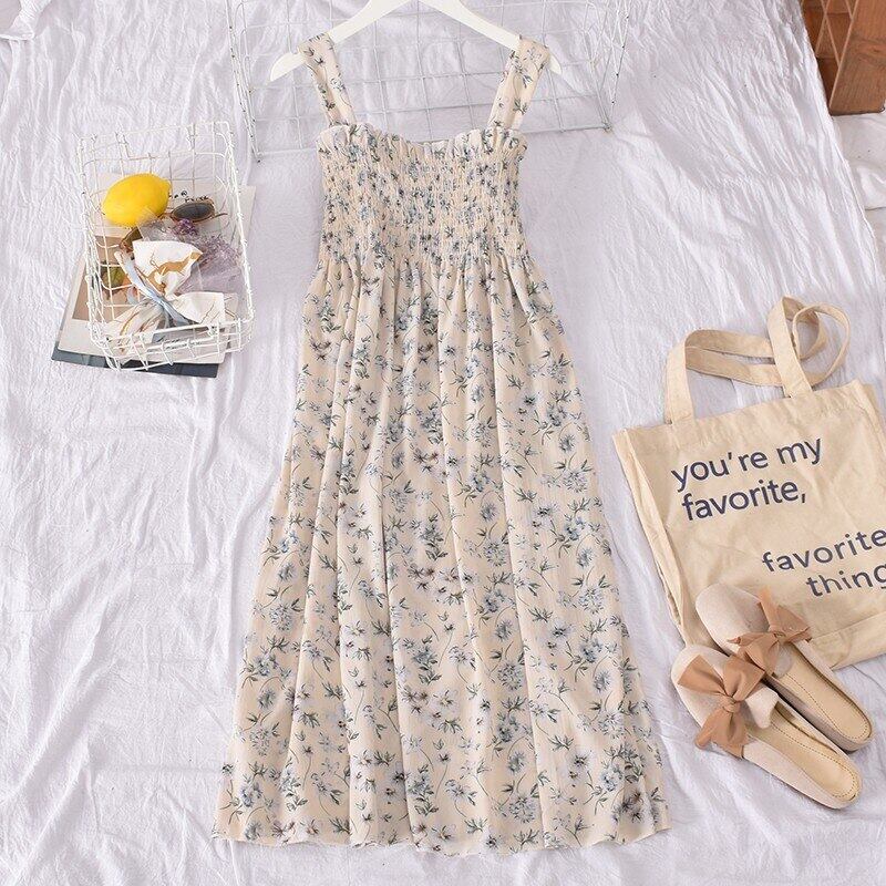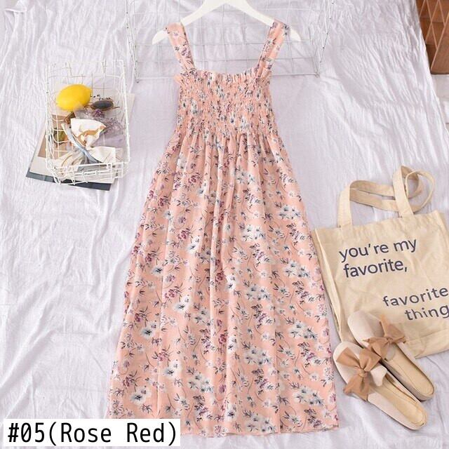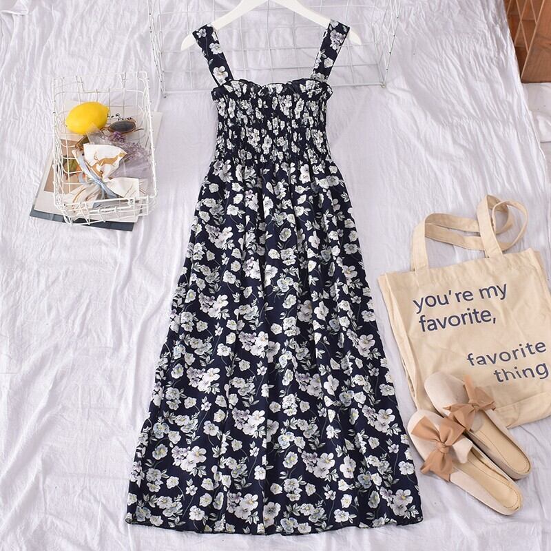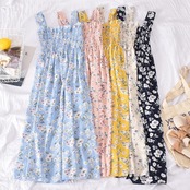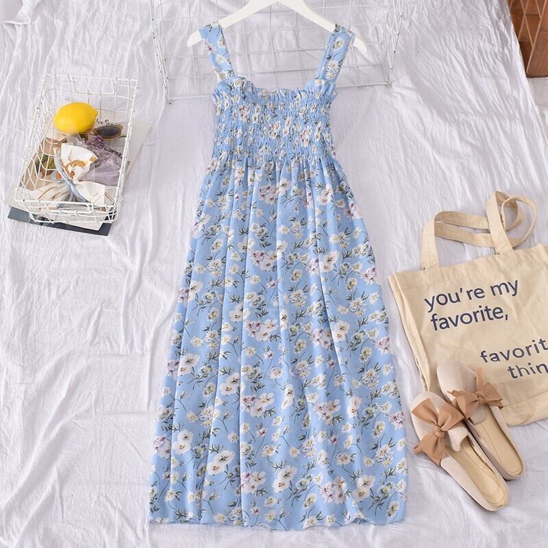 花柄サスペンダードレスセクシーオープンバックフレンチドレス花柄ビーチパーティーセクシーサスペンダーミドル丈スカート蓮の葉