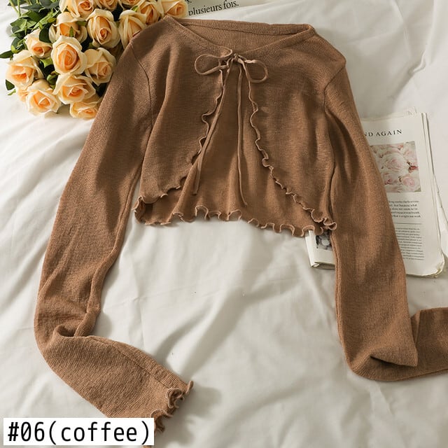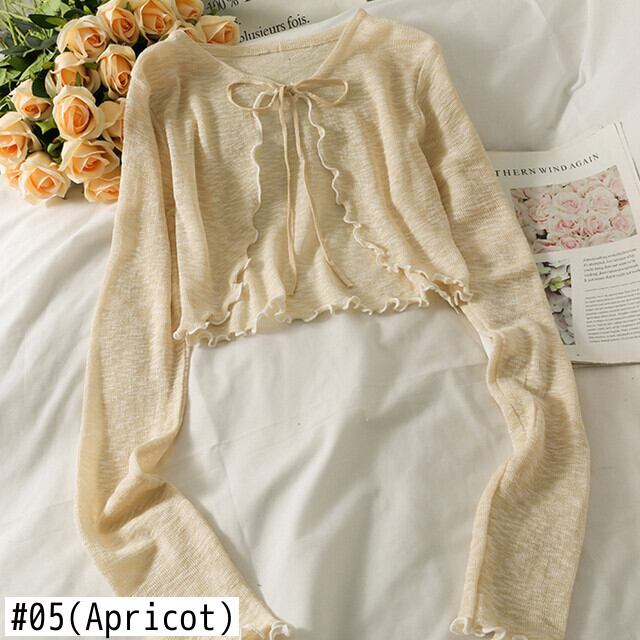 レディースブラウスとトップスボウレースアップ長袖クロップトップシャツ薄いカーディガン美的服スタイル ロング リボン