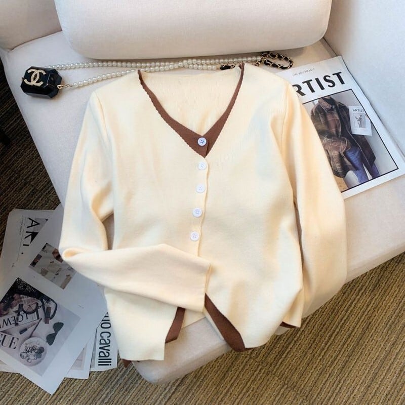 春秋パッチワークセーター長袖 V ネックプルオーバーニットトップパーカーニットジャンパー ロング スプリング 春物 オータム 秋物 Vネック