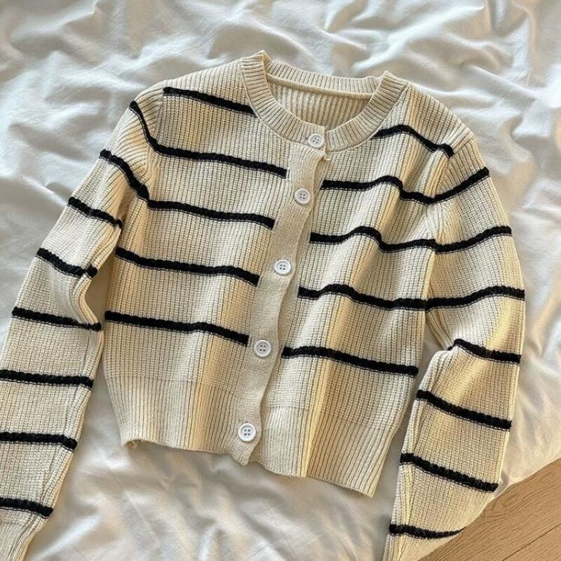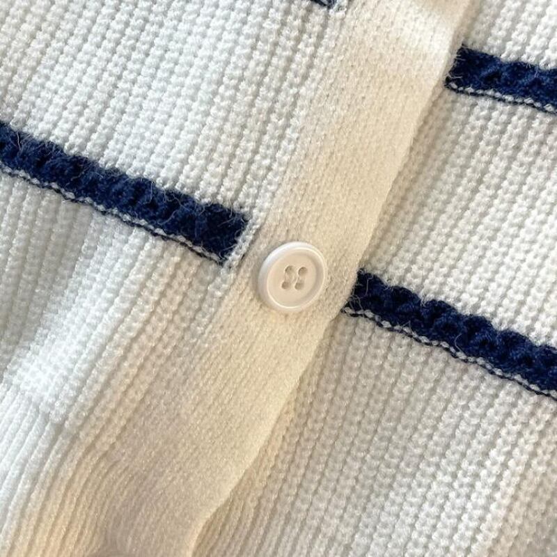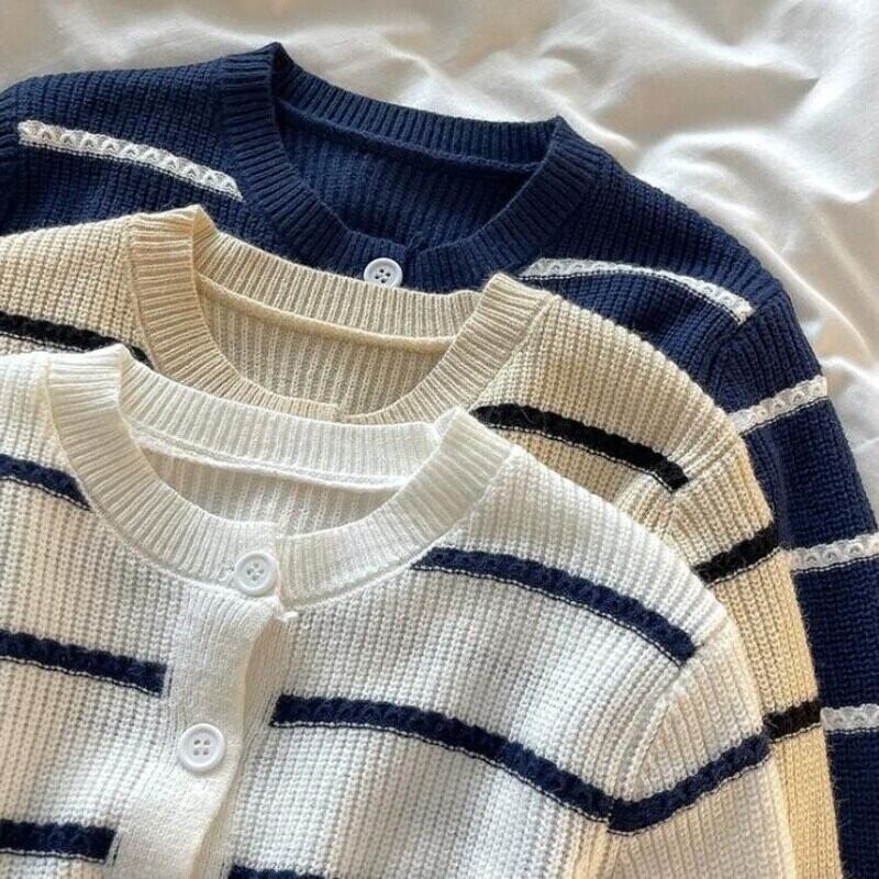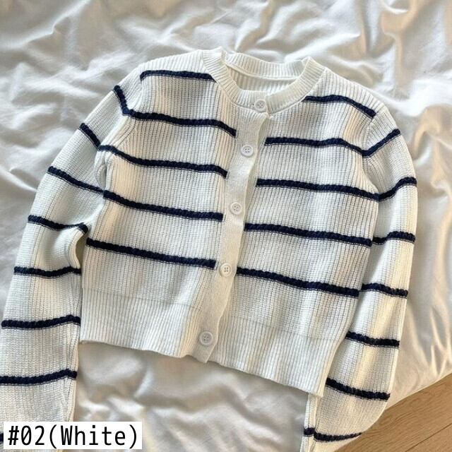 フレンチスタイル丈カーディガンセーター秋冬服長袖ボタンコートストライプニットトップ ロング オータム 秋物 ウィンター 冬物