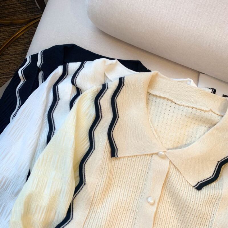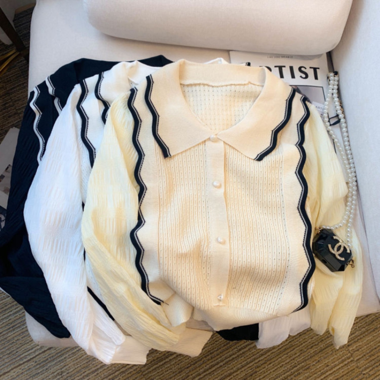 秋ドールカラーニットシャツ長袖トップカーディガンボタンシャツセーター ロング オータム 秋物